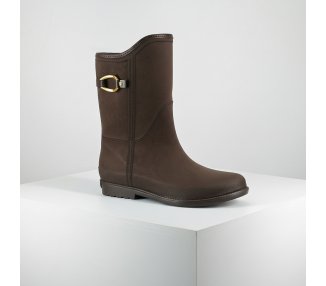 Bota de vestir para dama en color melle oscuro, modelo de medio tubo con textura durazno, con detalle metálico y suela antiderrapante, complementando con nuestra tecnología Polidry. La tecnología Polidry de Ülan es única en el mercado, esta moderna y novedosa tecnología convierte a tus botas Ülan en botas 100% impermeables, lo que le permite mantener a tus pies protegidos de las adversidades...