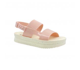 Sandalia casual para dama color rosa lechoso modelo de pata de gallo, adicionada que evita que tu pie resbale al utilizar el calzado. El material PET es un polímero especializado con un grabado especial anti sudor.