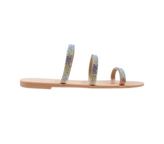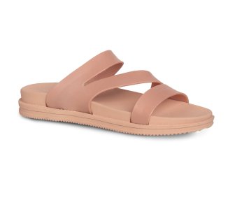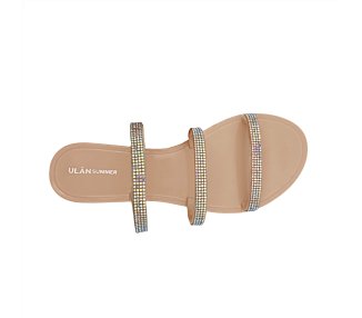 Sandalia casual para dama en color blush, modelo de tres tiras con un tapete de cristal pegatina. La tecnología Slipdry de Ülan Summer es novedosa en el mercado del calzado y es ideal para mantener tus pies frescos y lucir a la moda este verano.