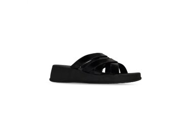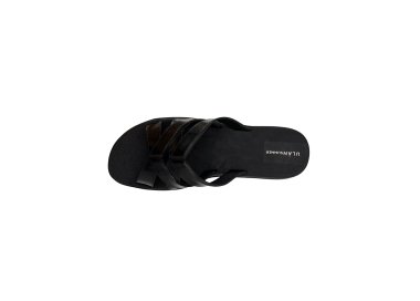 Sandalia casual para dama en color negro, modelo de dos tiras cruzadas adicionada con tecnología Slipdry, que evita que tu pie resbale al utilizar el calzado. El material es un polímero especializado con un grabado especial anti sudor. La tecnología Slipdry de Ülan Summer es novedosa en el mercado del calzado y es ideal para mantener tus pies frescos y lucir a la moda este verano.