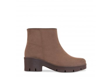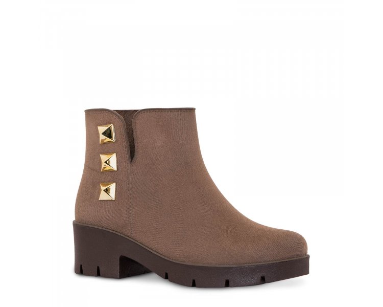Bota de vestir para dama en color café, modelo de botín con textura durazno, con detalle metálico y suela antiderrapante, complementando con nuestra tecnología Polidry. La tecnología Polidry de Ülan es única en el mercado, esta moderna y novedosa tecnología convierte a tus botas Ülan en botas 100% impermeables, lo que le permite mantener a tus pies protegidos de las adversidades del clima con...