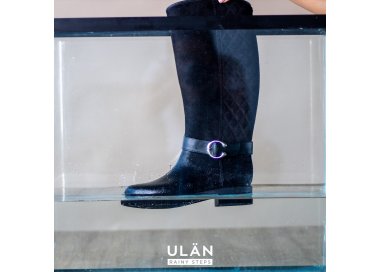 Bota de vestir para dama en color negro y suela antiderrapante, complementando con nuestra tecnología Polidry. La tecnología Polidry de Ülan es única en el mercado, esta moderna y novedosa tecnología convierte a tus botas Ülan en botas 100% impermeables, lo que le permite mantener a tus pies protegidos de las adversidades del clima con un calzado de diseño y estilo único. Estás características y propiedades hacen que puedas usar tus botas Ülan en temporada de lluvia, frío o nieve con la seguridad de que tus pies están protegidos siempre.