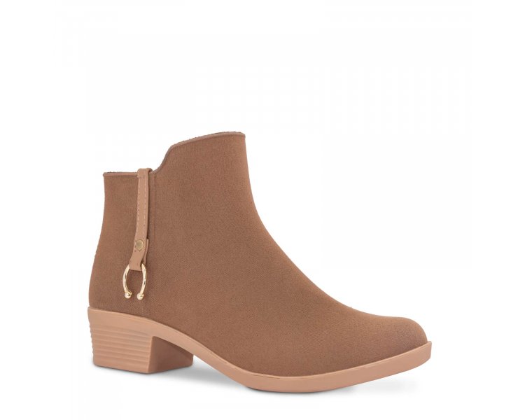 Bota de vestir para dama en color melle, modelo de botín con textura durazno, con detalle metálico y suela antiderrapante, complementando con nuestra tecnología Polidry. La tecnología Polidry de Ülan es única en el mercado, esta moderna y novedosa tecnología convierte a tus botas Ülan en botas 100% impermeables, lo que le permite mantener a tus pies protegidos de las adversidades del clima con...