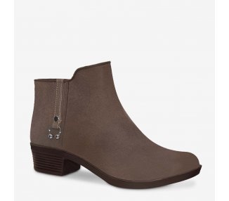 Bota de vestir para dama en color café, modelo de medio tubo con textura brother, con detalle metálico y suela antiderrapante, complementando con nuestra tecnología Polidry. La tecnología Polidry de Ülan es única en el mercado, esta moderna y novedosa tecnología convierte a tus botas Ülan en botas 100% impermeables, lo que le permite mantener a tus pies protegidos de las adversidades del clima...